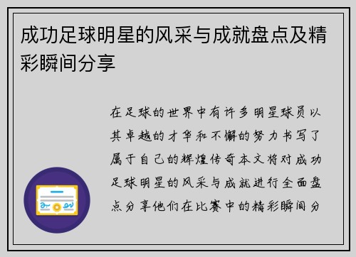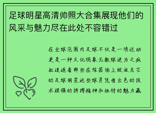 在全球足球的舞台上,众多巨星以其卓越的球技和传奇的人生故事深深吸引着无数球迷。在这些巨星的成长过程中,他们的生日庆祝往往伴随着重要的里程碑与难忘的回忆。本文将从四个方面对全球足球巨星的生日庆祝与传奇故事进行盘点,包括他们的生日庆祝方式、代表性的生日事件、与家人的温情瞬间,以及他们在生日时所传递出的精神力量。通过这些内容,我们不仅可以感受到巨星们辉煌背后的辛苦与坚持,也能领略到他们作为公众人物所展现...